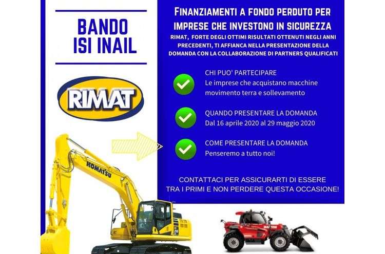 Bando ISI INAIL - FINANZIAMENTI A FONDO PERDUTO PER LE IMPRESE CHE ACQUISTANO MACCHINE PER IL MOVIMENTO TERRA E PER IL SOLLEVAMENTO
